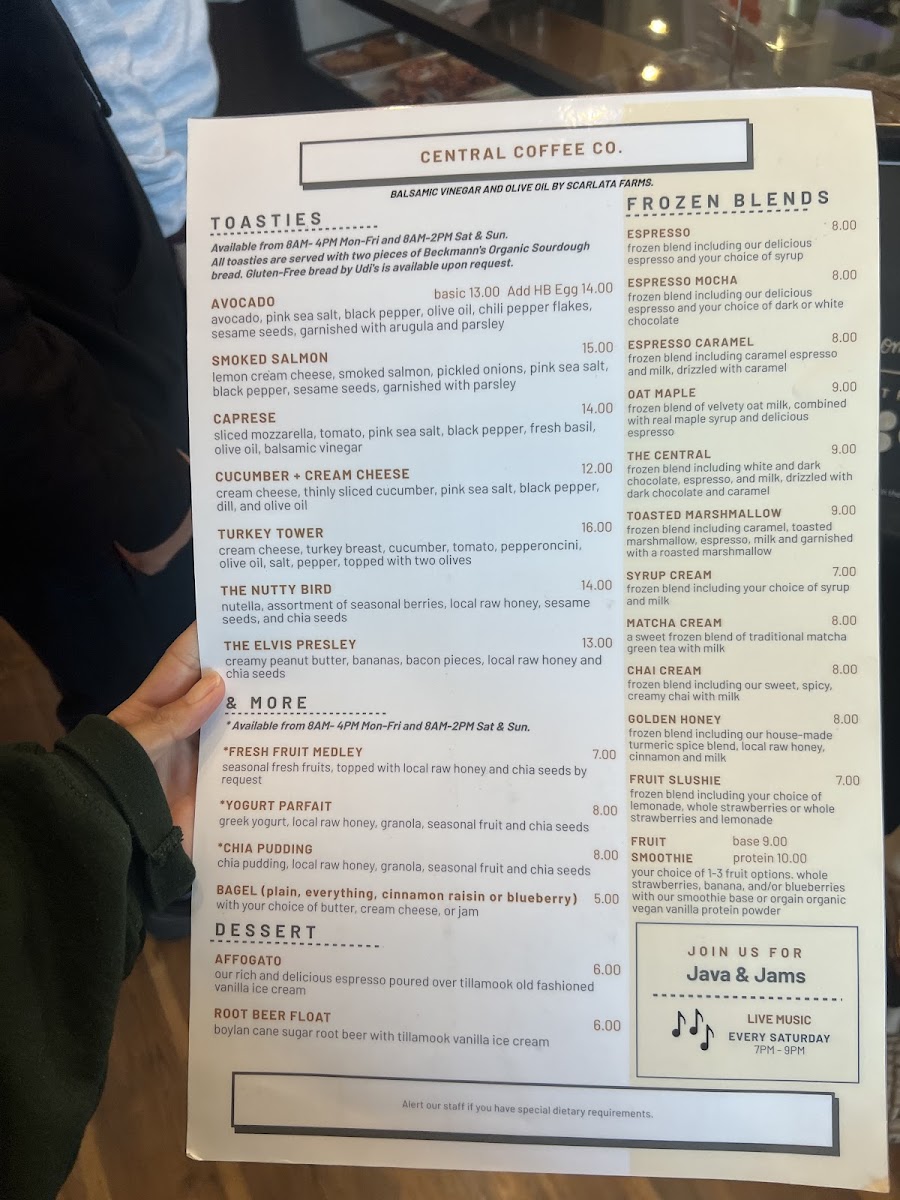Whether you’re a fan of rich mochas or prefer tea options like the golden latte with oat milk, there's something for everyone. With a commitment to crafting the perfect brew, Central Coffee Co. is poised to be your new favorite café.